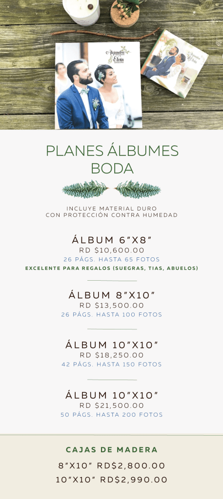 Estoy feliz de tener estos planes especialmente para los álbumes de Boda, ese momento que disfrutamos y que se quedó en nuestro corazón para toda la vida. Todo surge porque los álbumes de Boda que me solicitan siempre tienen entre 100 a 200 fotos, así que se me ocurrió ya tener unos planes solo para este momento que la verdad: ES INDESCRIPTIBLE!
